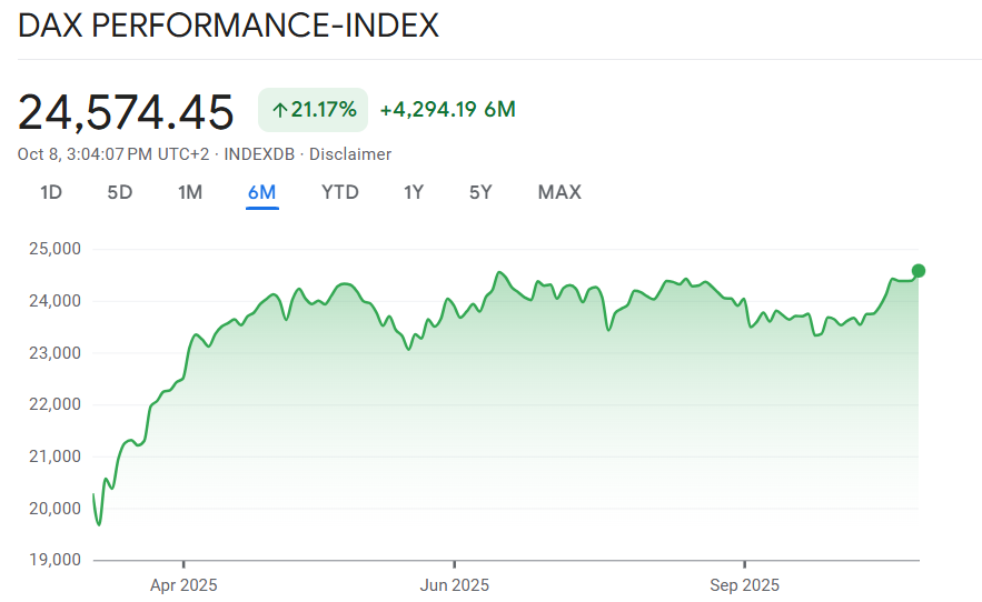 Trotz dieser Unsicherheiten bleibt der Dax robust: Seit seinem Sprung über 24.500 Punkte am vergangenen Freitag hat sich der Index nur leicht verändert und schloss am Vortag bei 24.385 Zählern – ein Zeichen relativer Stabilität trotz des politischen Gegenwinds. Das Rekordhoch von 24.639 Punkten aus dem Juli bleibt damit in greifbarer Nähe.