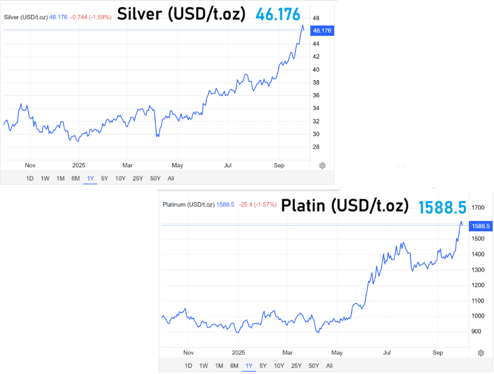 In Zeiten politischer Unsicherheit suchen Investoren traditionell sichere Häfen. Entsprechend legte der Goldpreis deutlich zu. Das Edelmetall profitierte von den Sorgen um den drohenden Regierungsstillstand und stieg auf ein neues Hoch. Fachleute erklärten, dass Gold neben seiner Funktion als Inflationsschutz auch als Absicherung gegen politische Risiken gefragt sei. Die jüngste Rally bei Silber und Platin verstärkt zudem den Trend hin zu Edelmetallen als Anlageform.